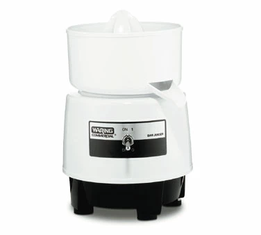 Use the Waring BJ120C Bar Juicer to quickly and easily turn fresh oranges, lemons, and limes into pure, delicious juice. An excellent addition to bars, restaurants, and cafeterias, this product juices up to 120 oranges per hour. This bar juicer comes with a 1 liter serving container that is dishwasher safe and easy to clean. Thanks to its universal reamer, it thoroughly juices a variety of citrus fruits, from the smallest lemon to the largest grapefruit.