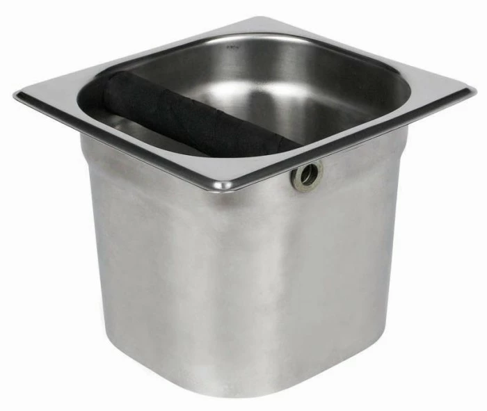 Made from rust-resistant 23 gauge stainless steel, this knock box is exceptionally durable and will withstand long term high volume use without denting. This knock box easily fits any 1/6th size opening.